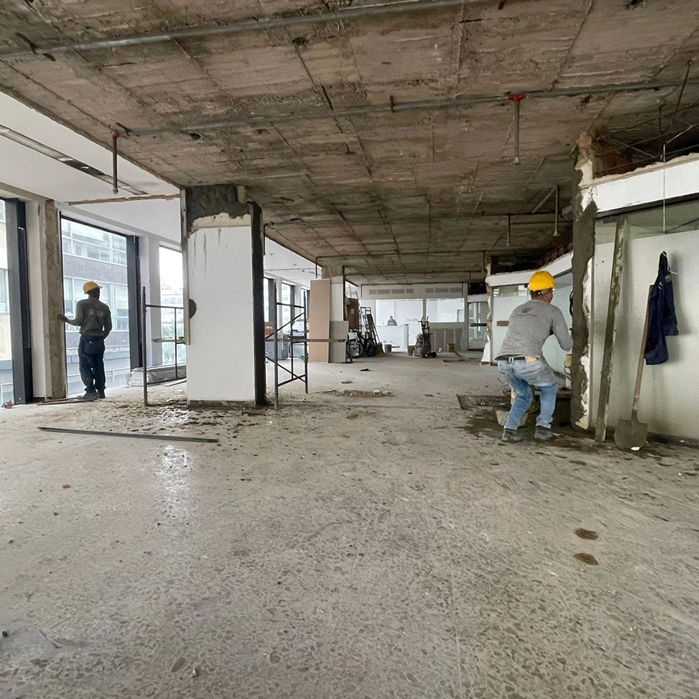 Nuestro personal operativo llevó a cabo los desmontes y demoliciones de diversos elementos, incluyendo muros divisorios de mampostería y superboard, vigas, columnas, placas, enchapes, tuberías, muebles de madera, muebles de mármol, vidriería, estructuras metálicas, y aparatos sanitarios con sus respectivos accesorios, entre otros. Estas actividades se realizaron en las áreas incluidas dentro del alcance del proyecto, que abarcaban el cuarto de botones, el bar Chispas, y las baterías de baños para hombres y mujeres, ubicados en el antiguo lobby del Hotel Tequendama.